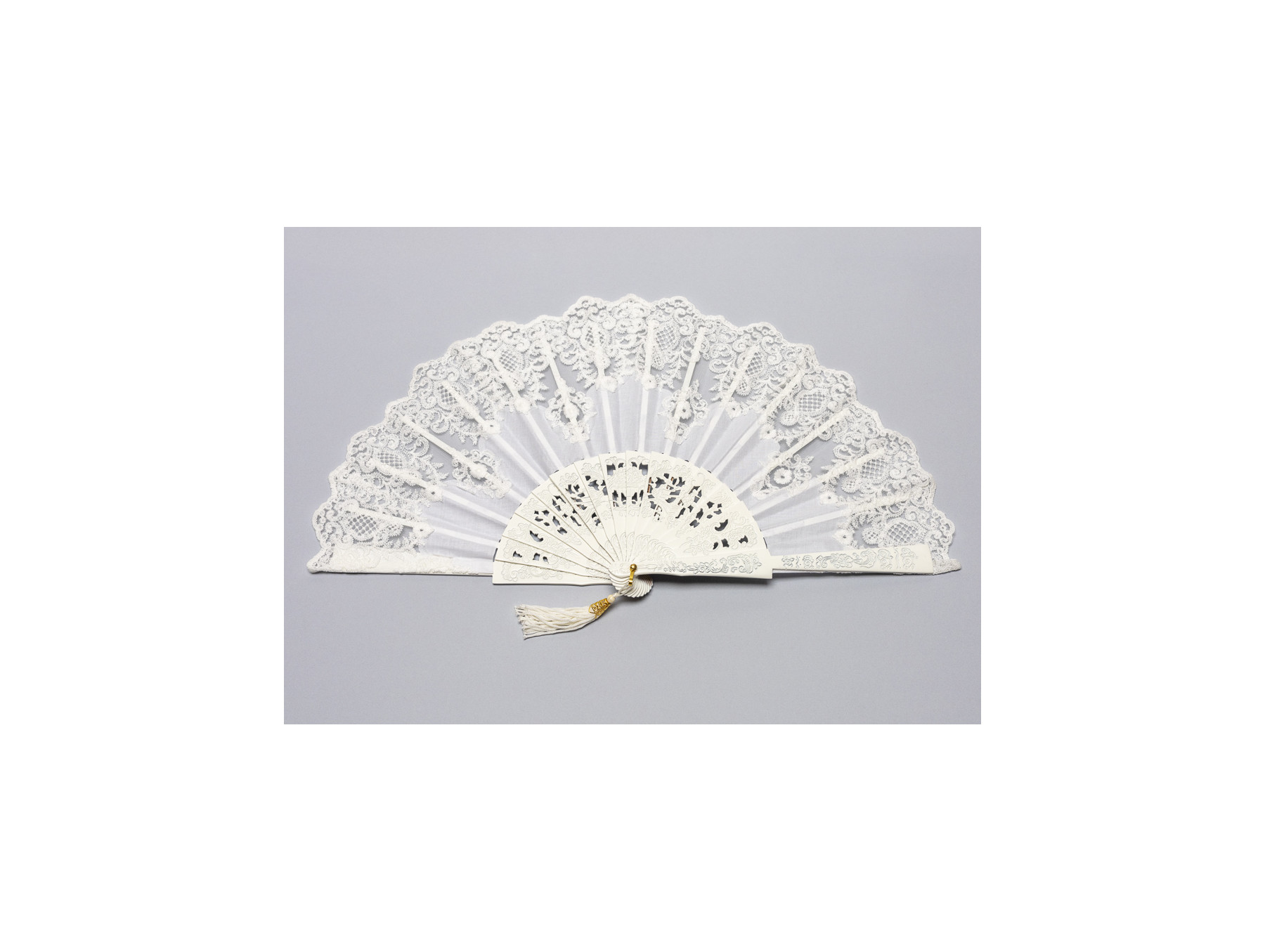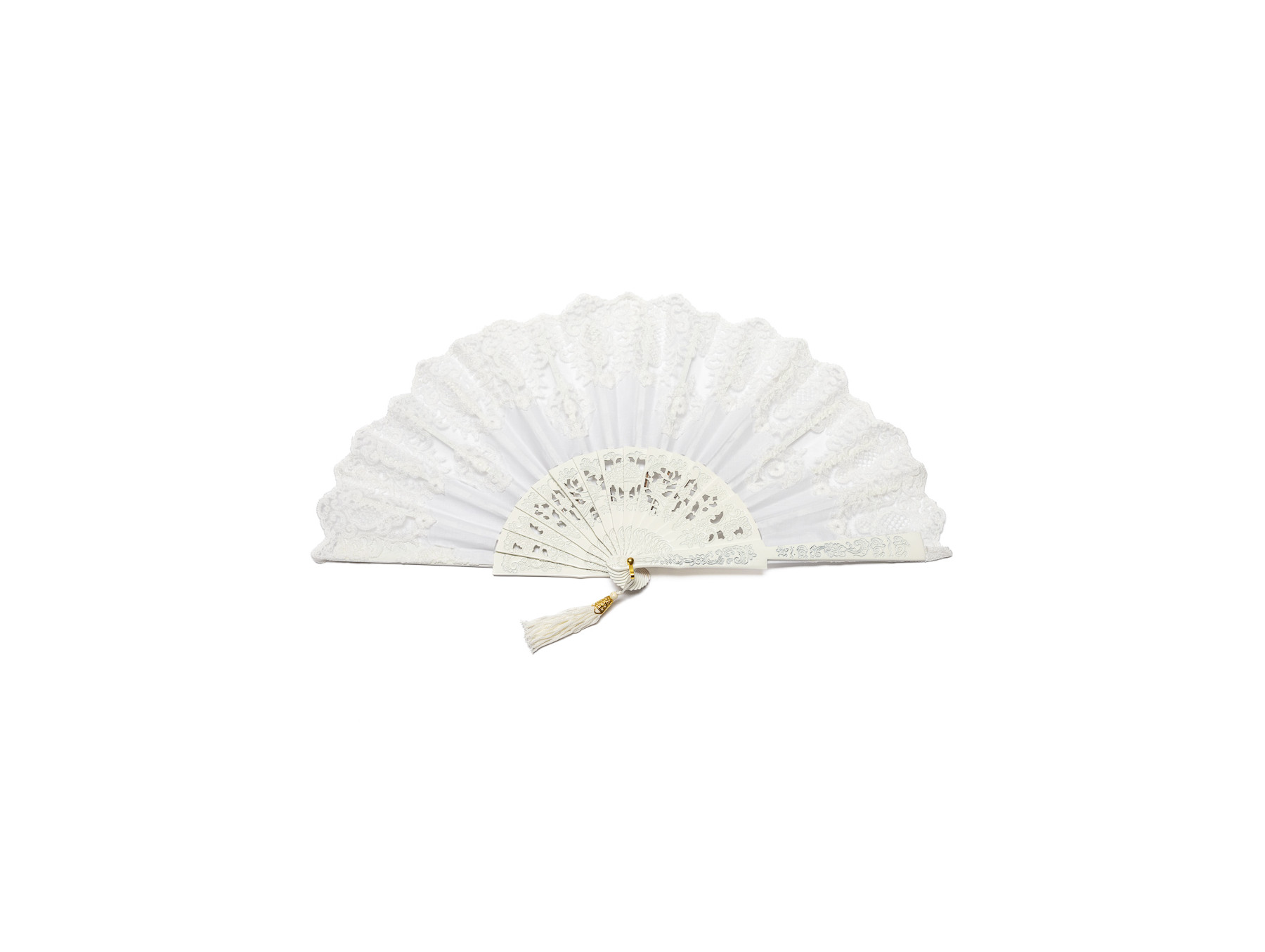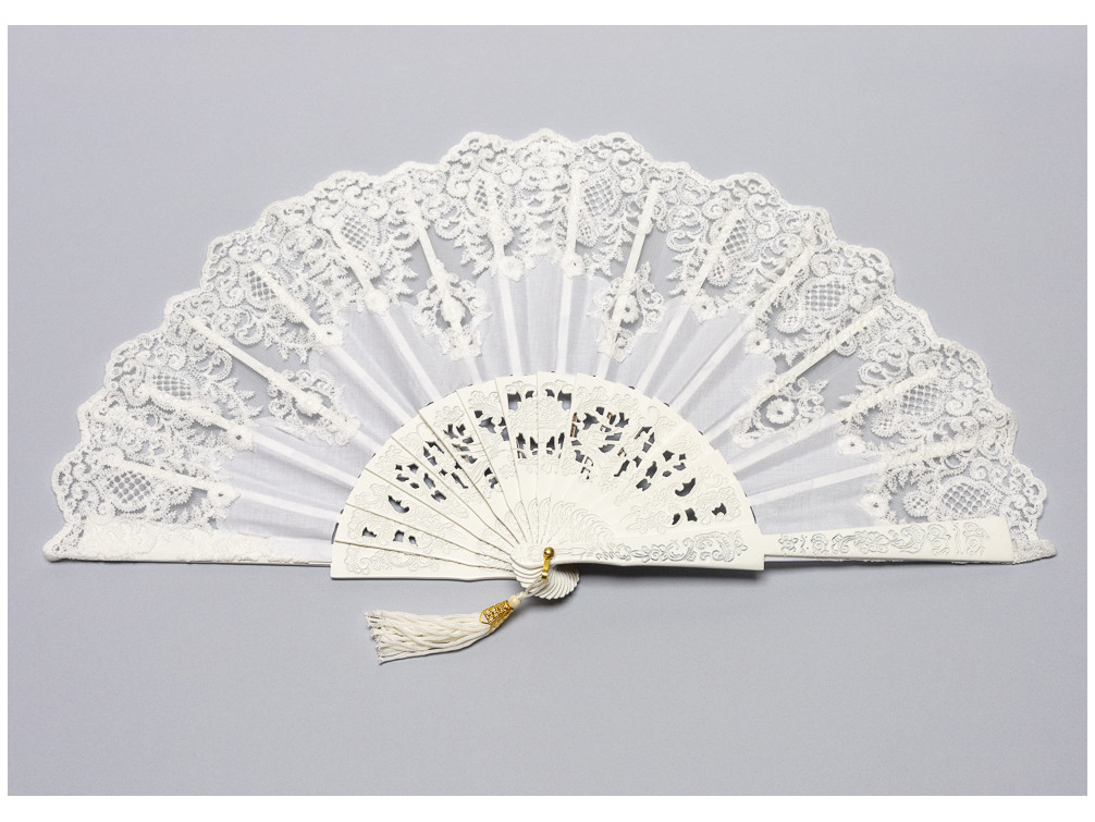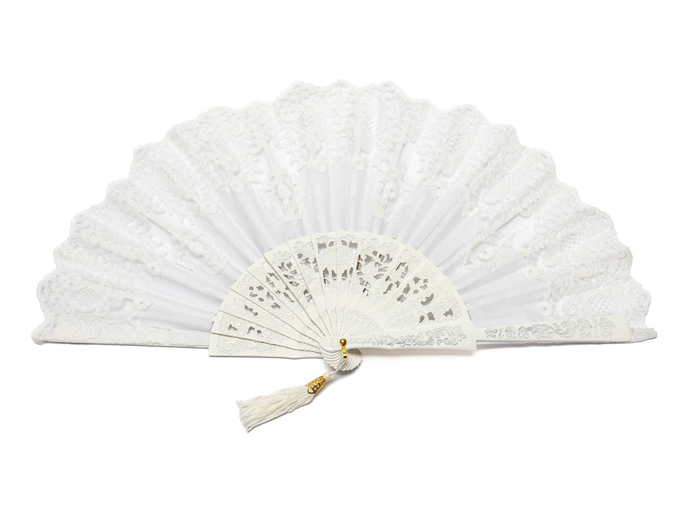 País de algodón con precioso diseño floral liso al principio y con encaje al final del abanico