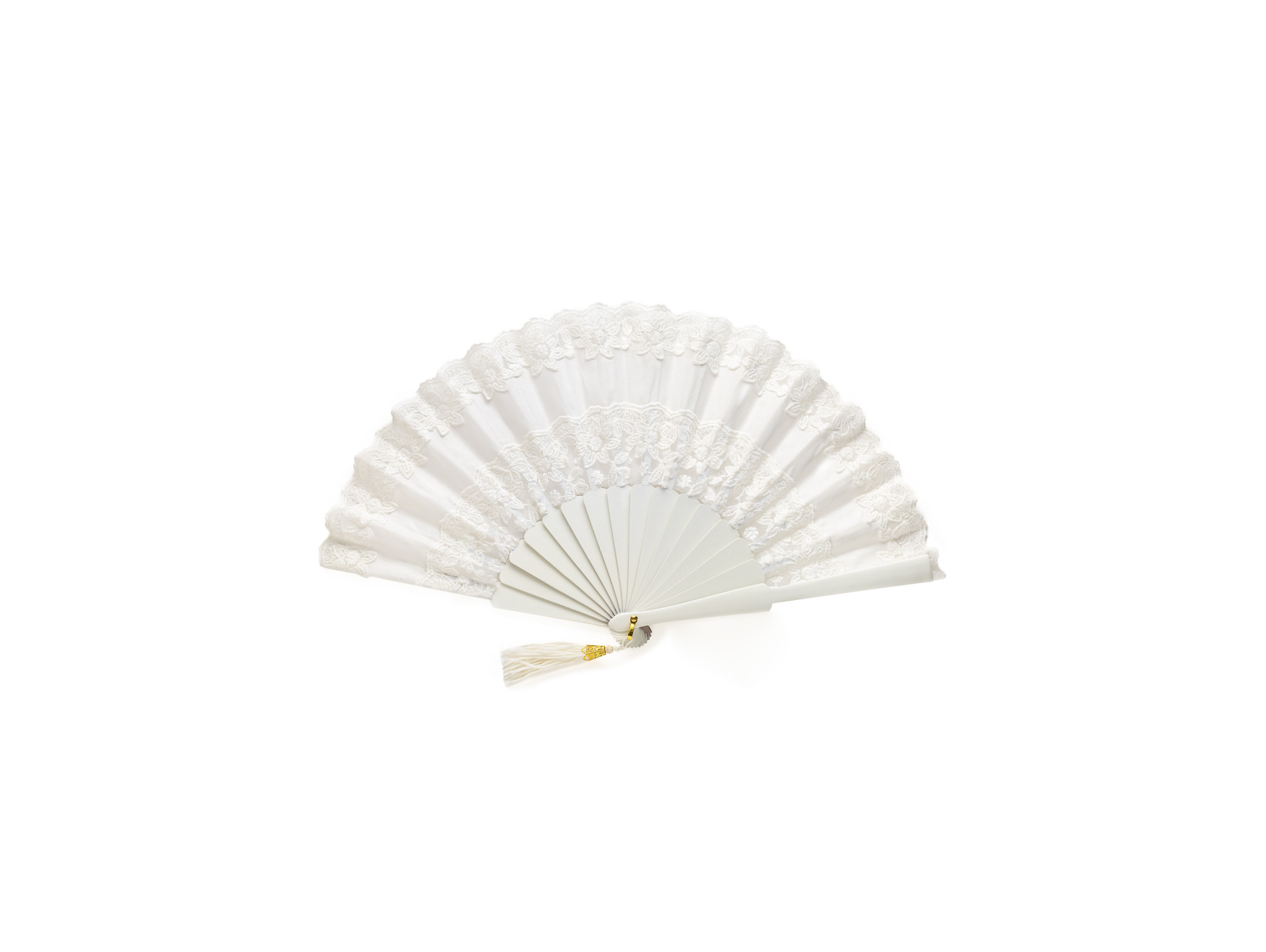 Precioso abanico de novia en color blanco con motivo floral