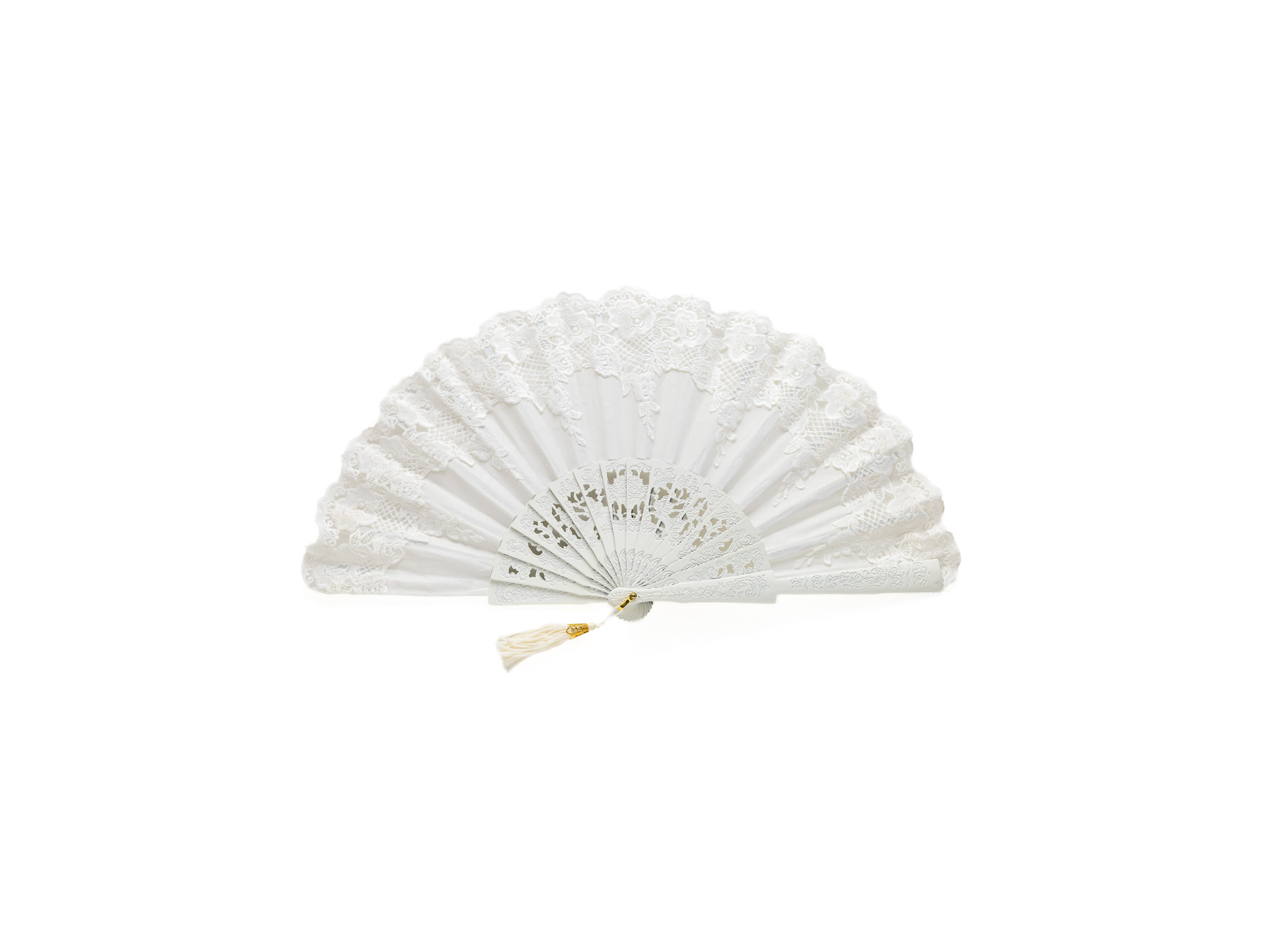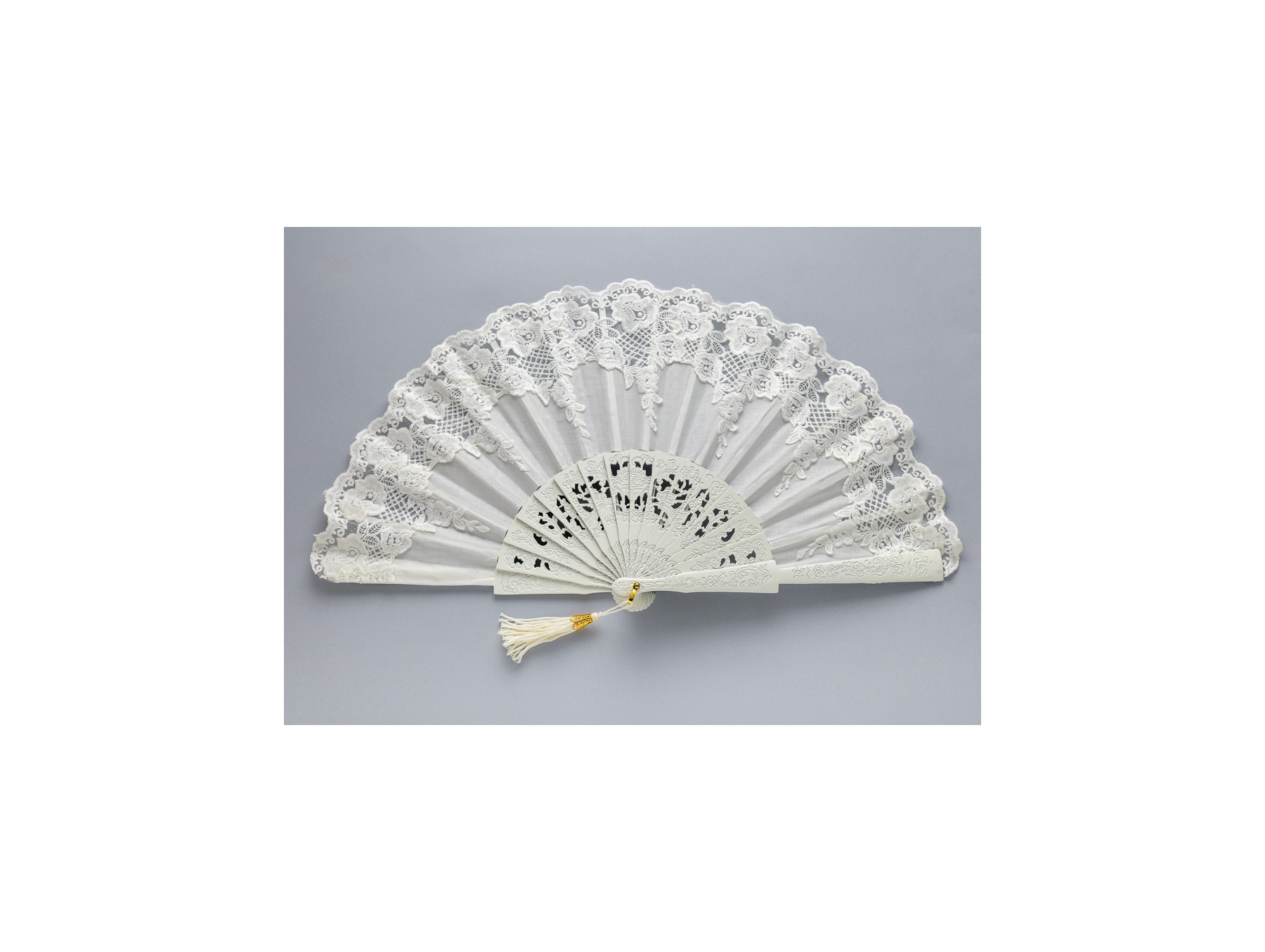 Varillaje calado con delicado diseño floral que se extiende por la varilla principal del abanico