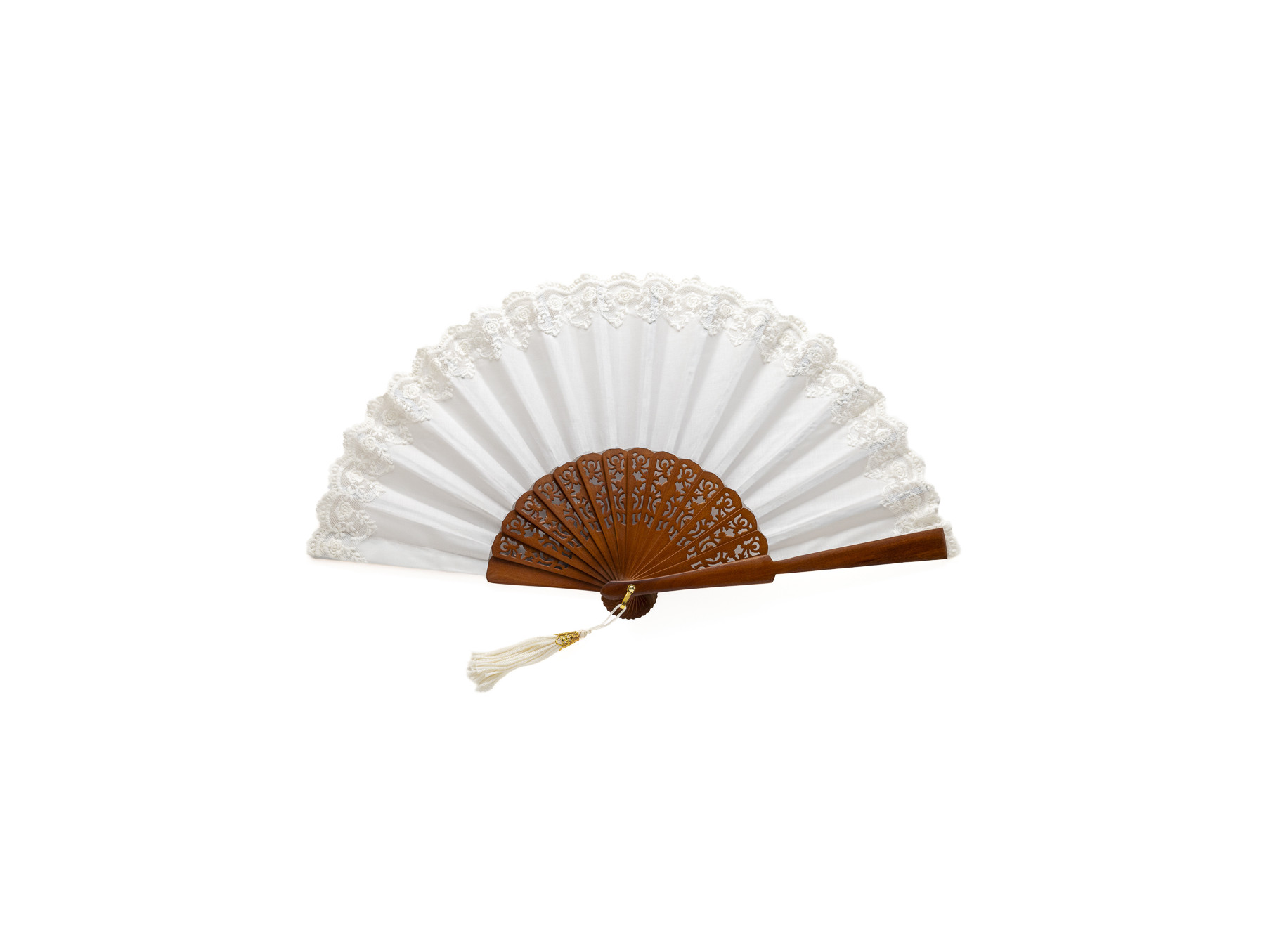 Delicado abanico de novia en madera de peral que mantiene su color natural