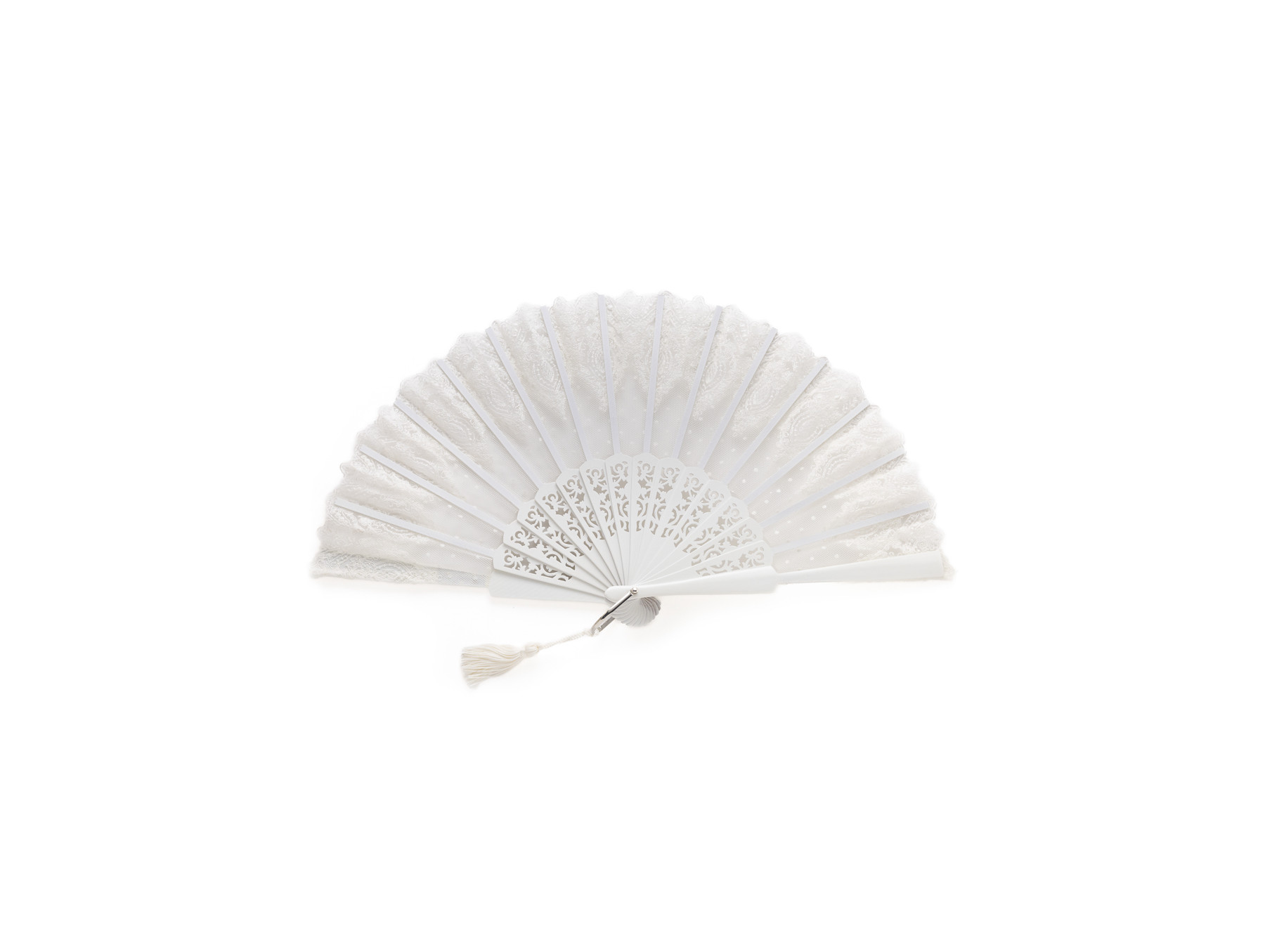 Varillaje calado en color blanco, que acompaña al país en plumeti también blanco, terminado en un delicado encaje que hace ondas