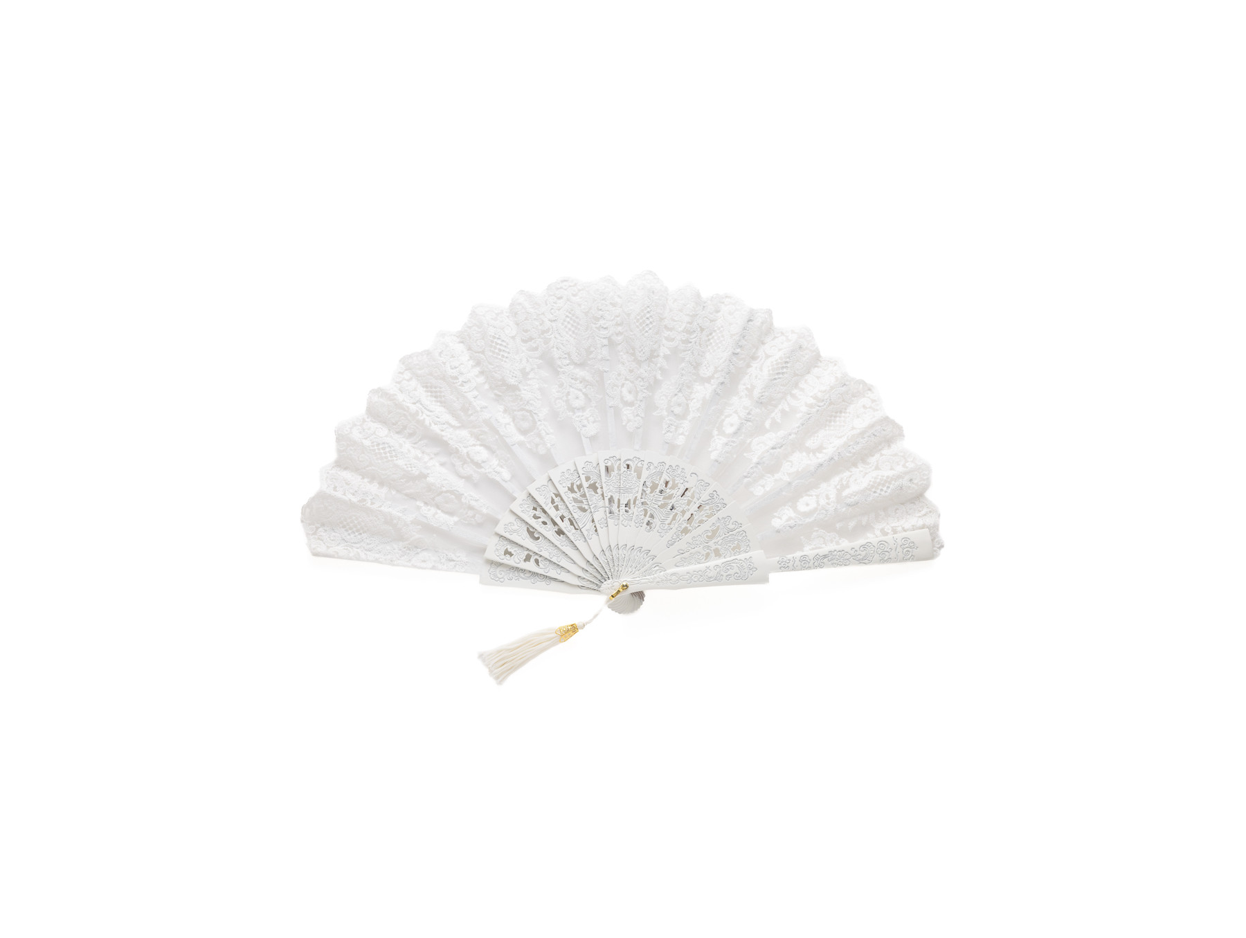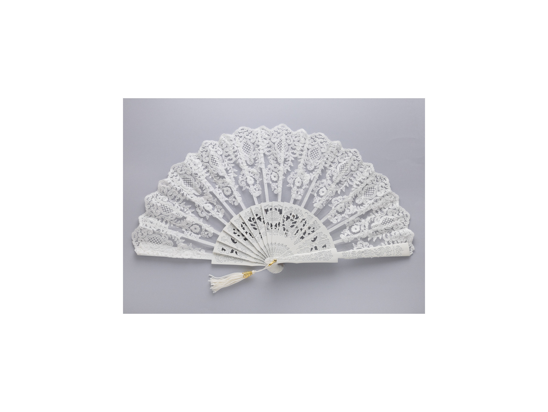 Precioso abanico de novia trabajado a mano en color blanco de madera de sapeli