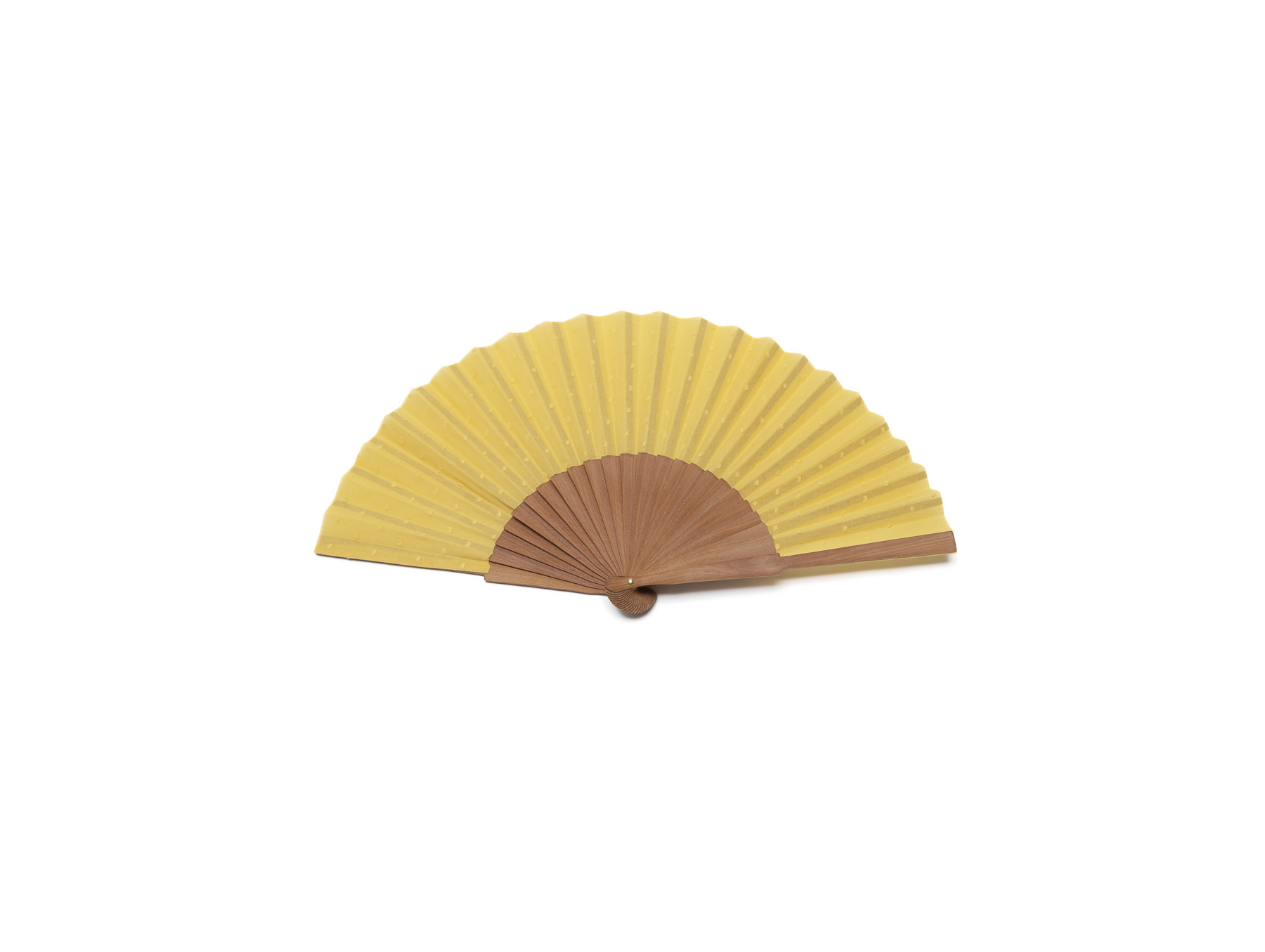 Abanico 100% algodón con detalle de plumeti que se extiende por todo su país de color mostaza