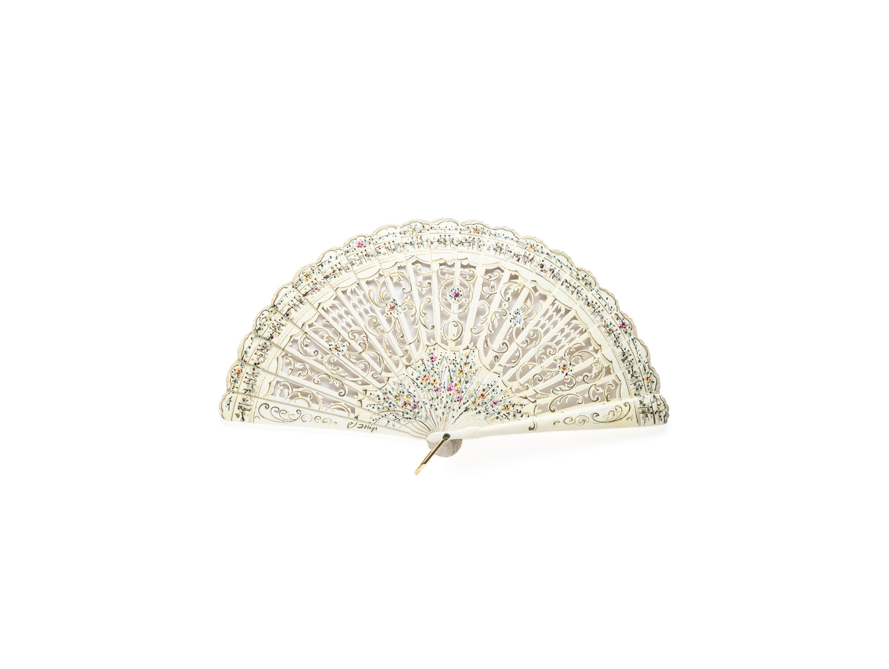 Varillaje calado en color marfil con delicados detalles florales pintados a mano en suaves colores cálidos