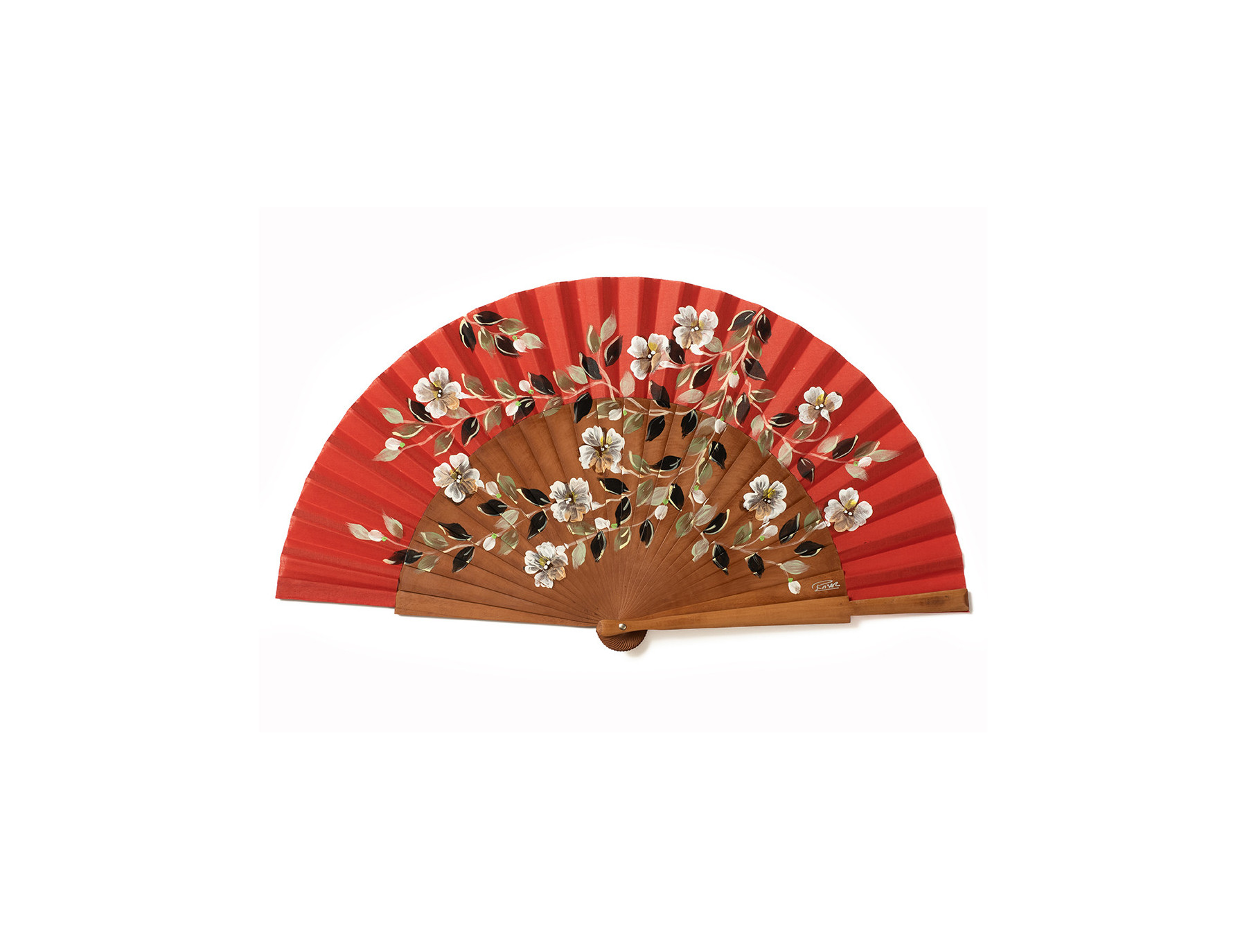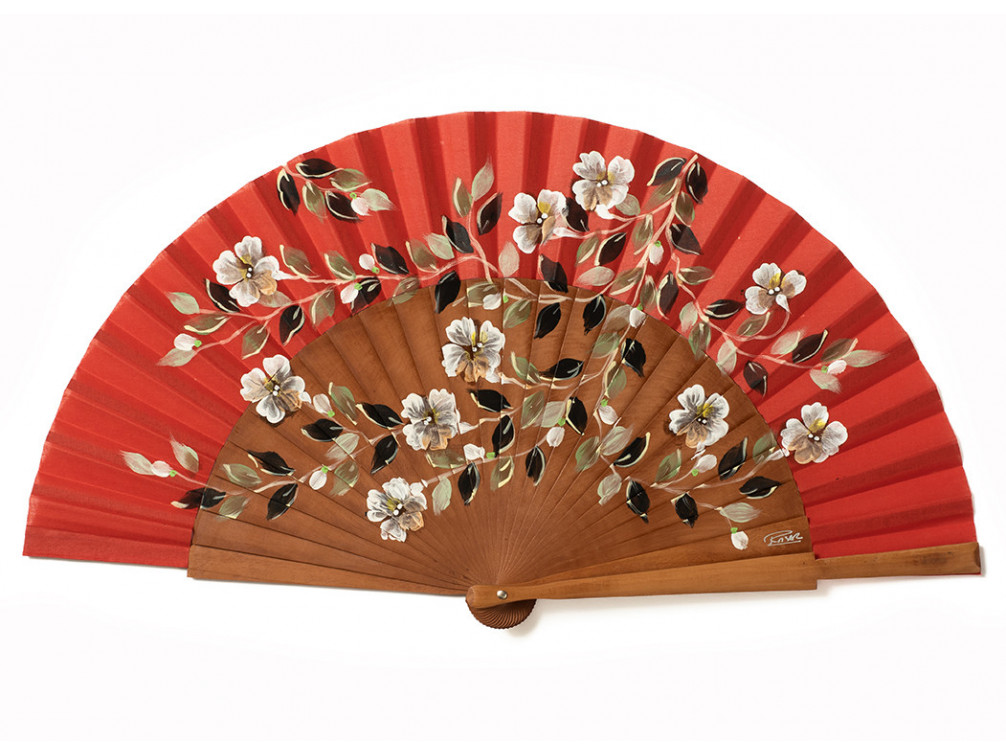 Elegante abanico pintado a mano. Madera de peral pulido por ambas caras.