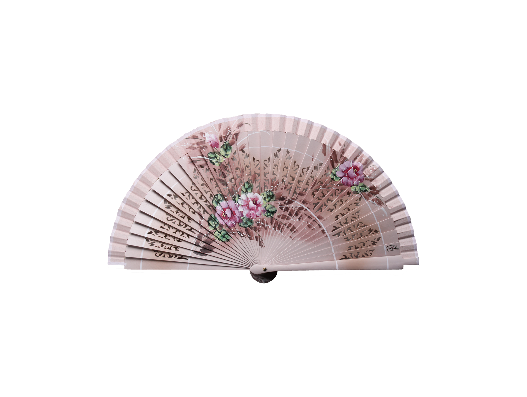 Abanico de madera sapelly pintado a mano.