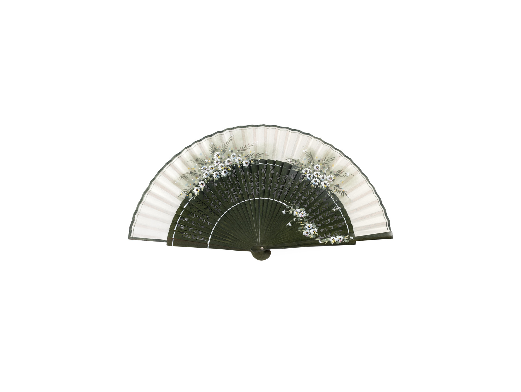 Abanico Margaritas Verde Oliva