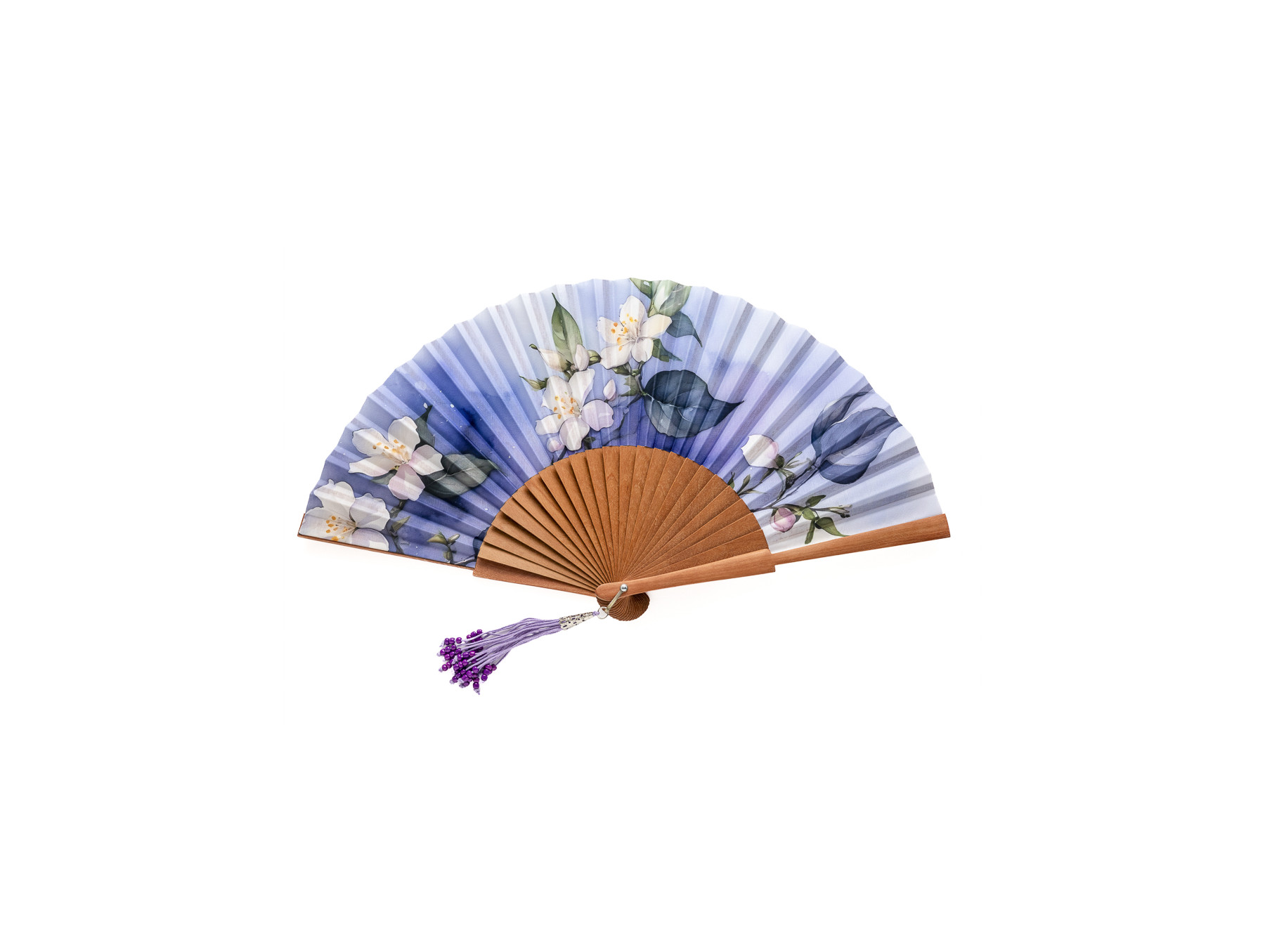 Abanico trabajado en madera de abedul que mantiene su color natural en su varillaje