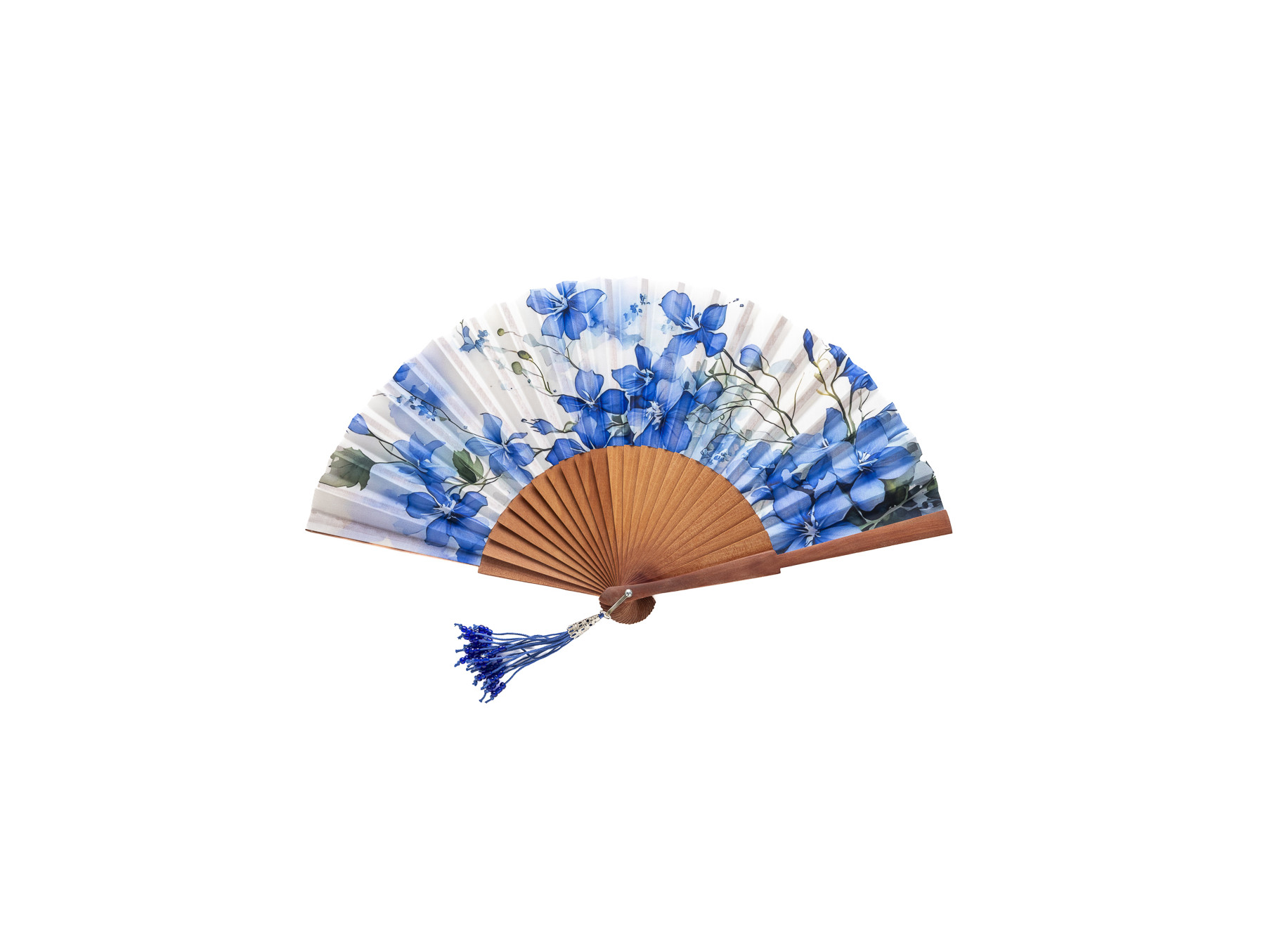 Abanico trabajado en madera de abedul que mantiene su color natural en su varillaje
