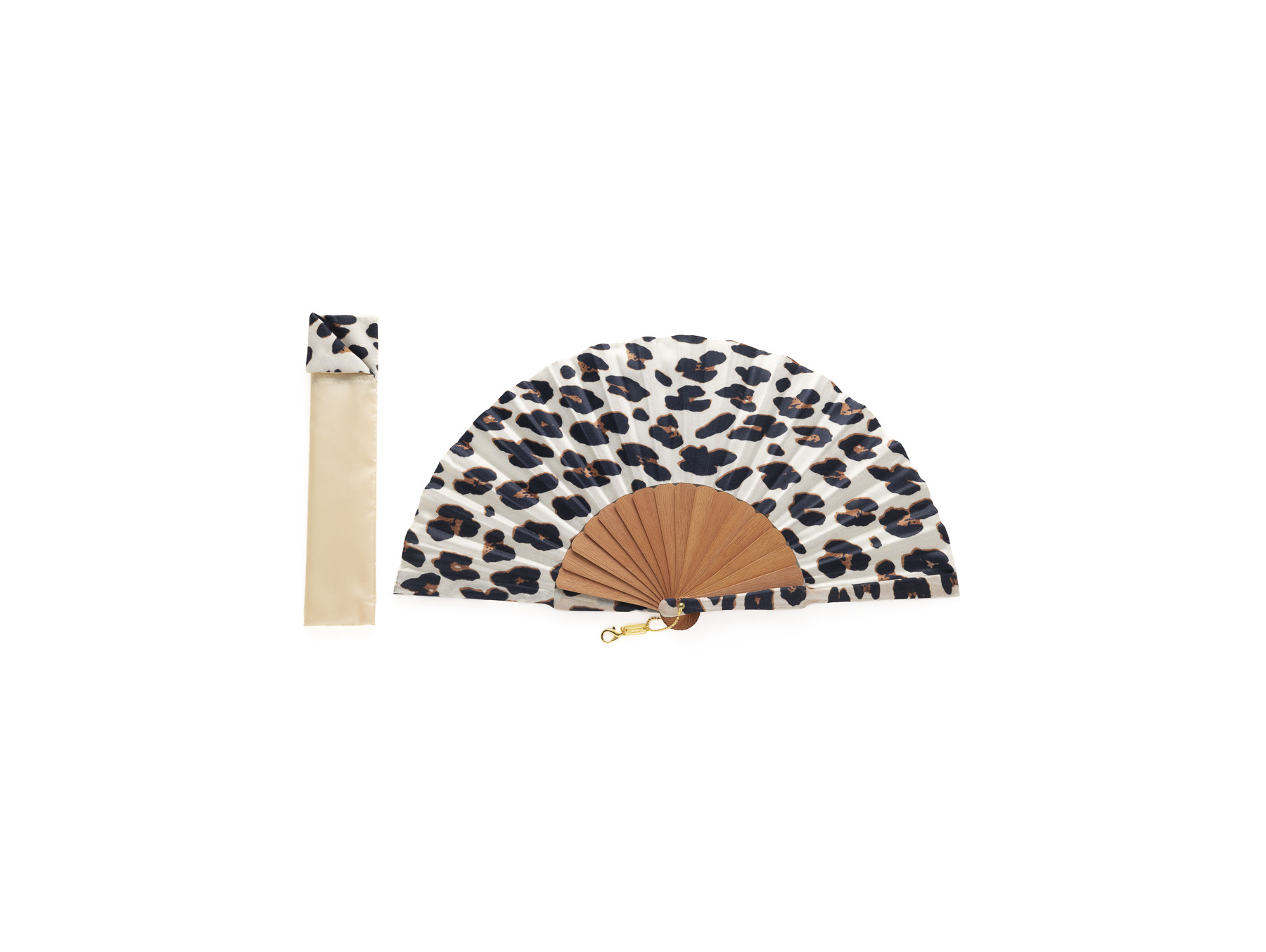 Varillaje en madera al natural y país en seda; trabajado estampado que simula el pelaje de un leopardo