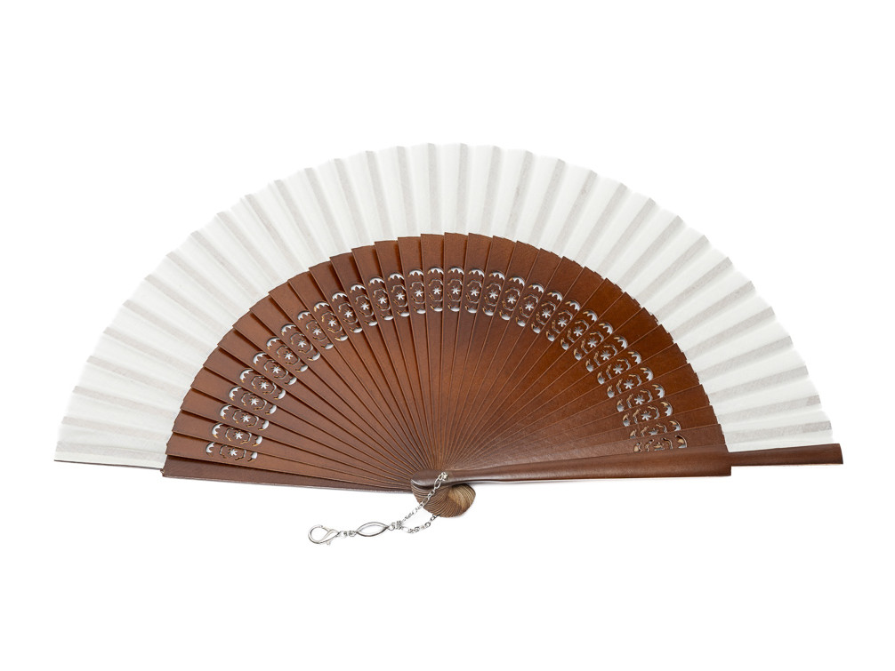 Detalle calado que se extiende por todo el varillaje de madera kotibe