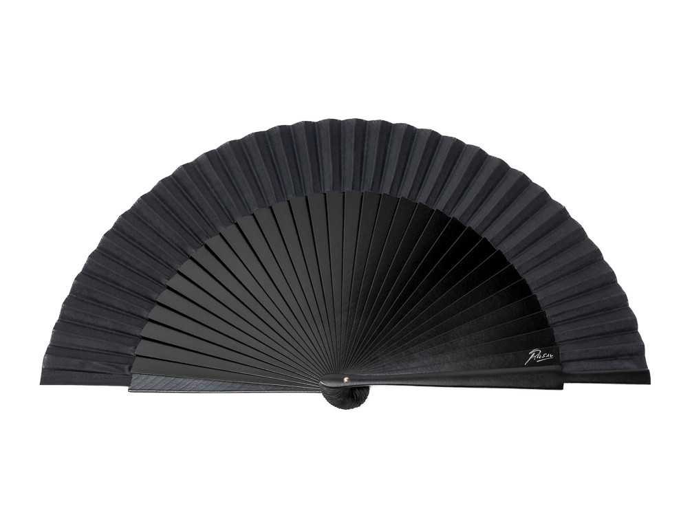 Elegante abanico realizado en madera de sapelly pulida; lacada en color negro