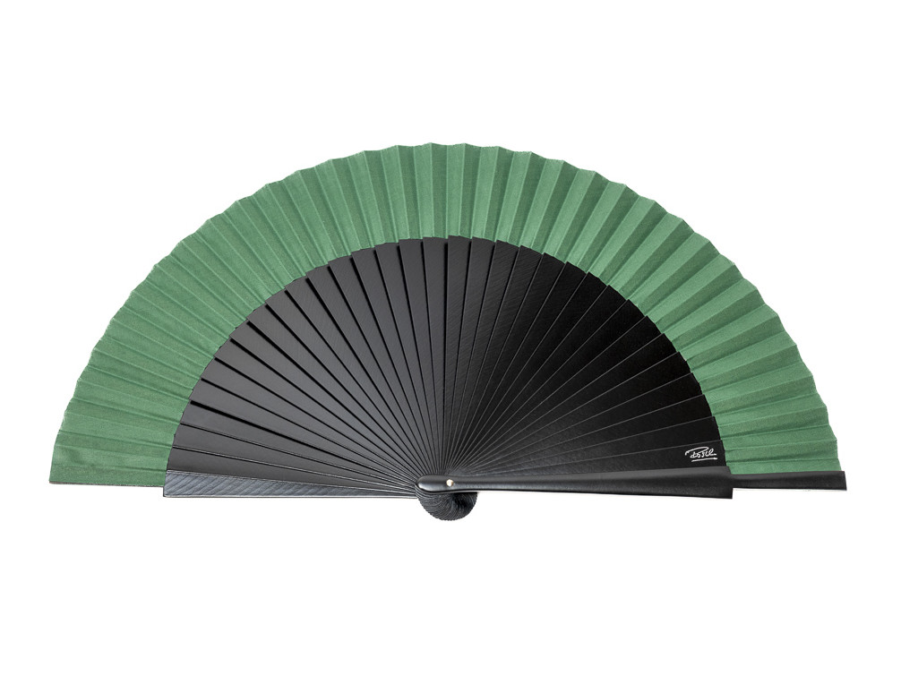 Elegante abanico realizado en madera de sapelly pulida; lacada en negro