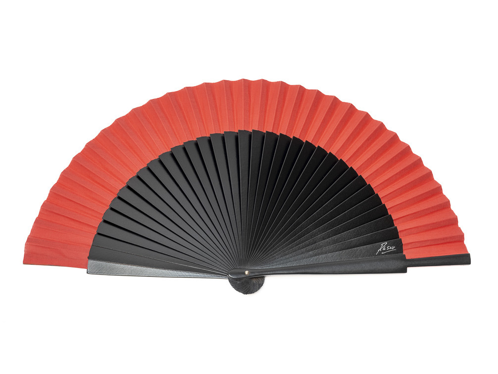 Elegante abanico realizado en madera de sapelly pulida; lacada en negro
