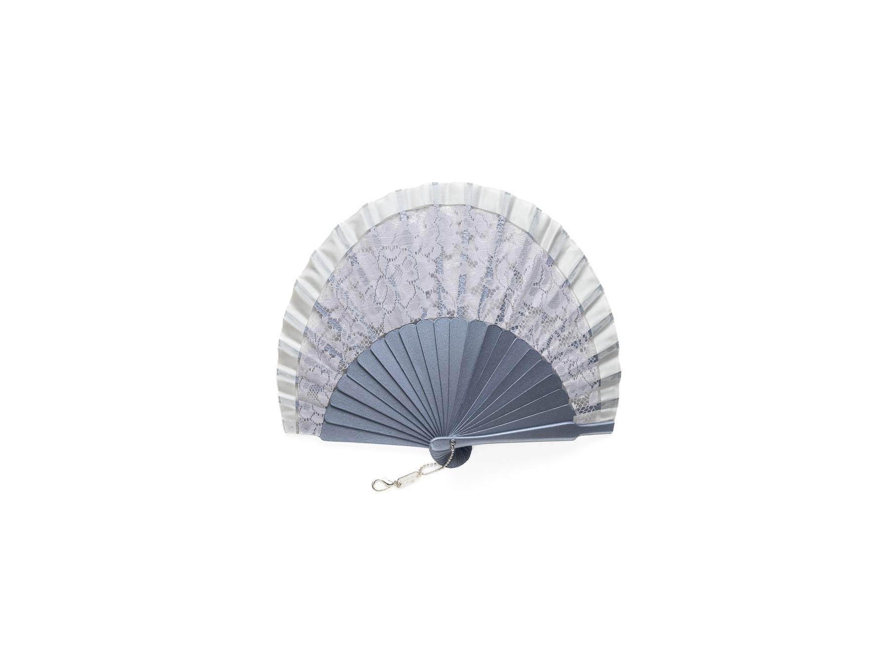 Bonito abanico de diseño clásico en color azul plateado con acabado en forma ovalada