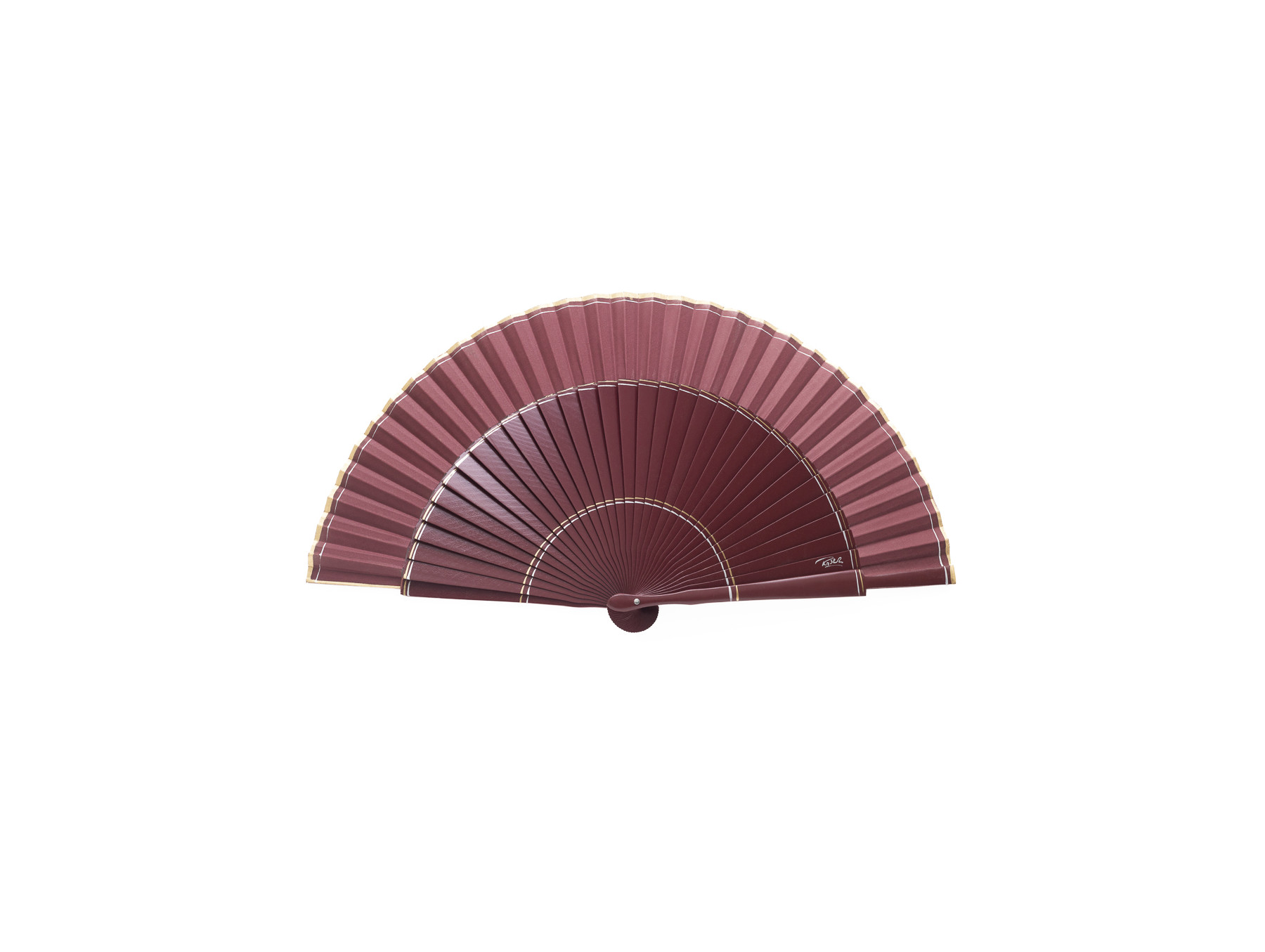 Abanico en color rosa realizado en madera de sapelly, satinado por ambas caras. Varillas lisas