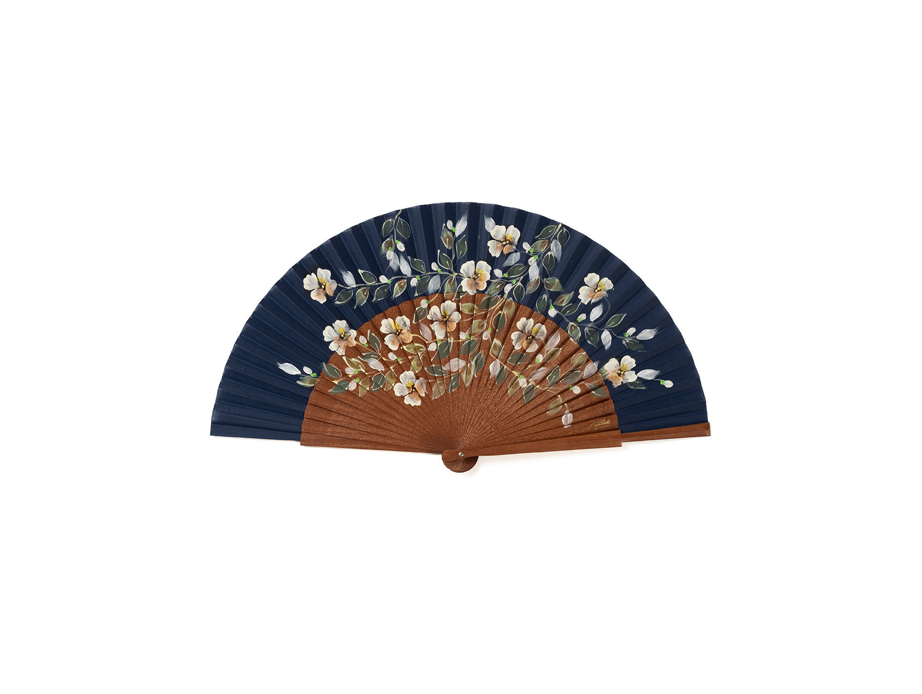 Elegante abanico pintado a mano. Madera de peral pulido por ambas caras.