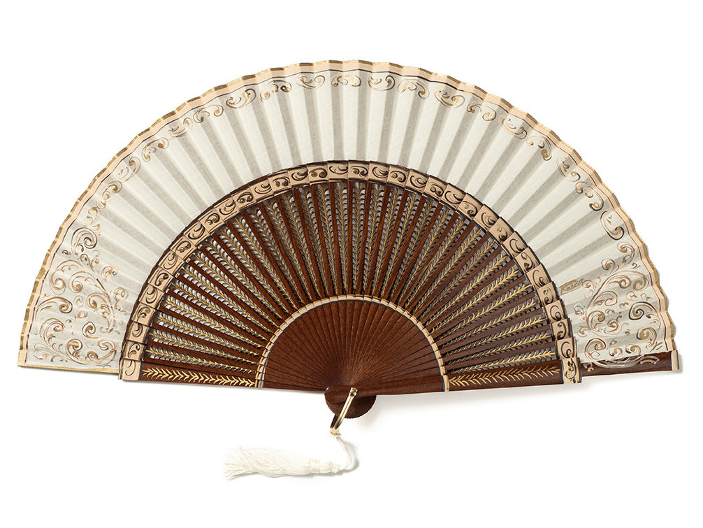 Elegante y ligero abanico realizado en madera de danta, conservando su color natural.