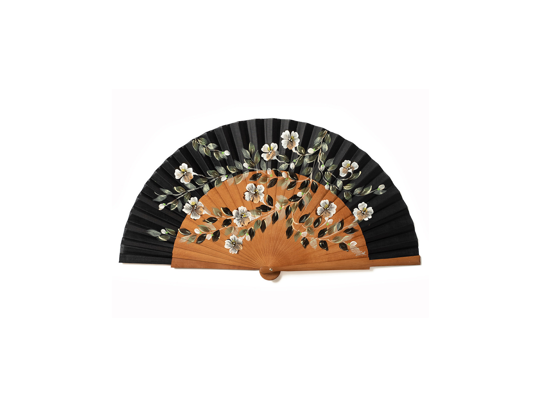 Elegante abanico pintado a mano. Madera de peral pulido por ambas caras.