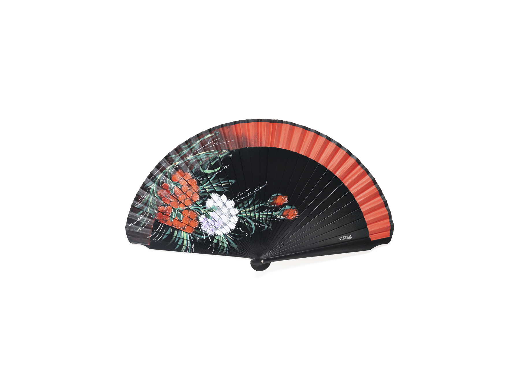 Varillaje liso en madera de sapán de color negro sobre el que se dibujan bonitos claveles en colores rojo y blanco