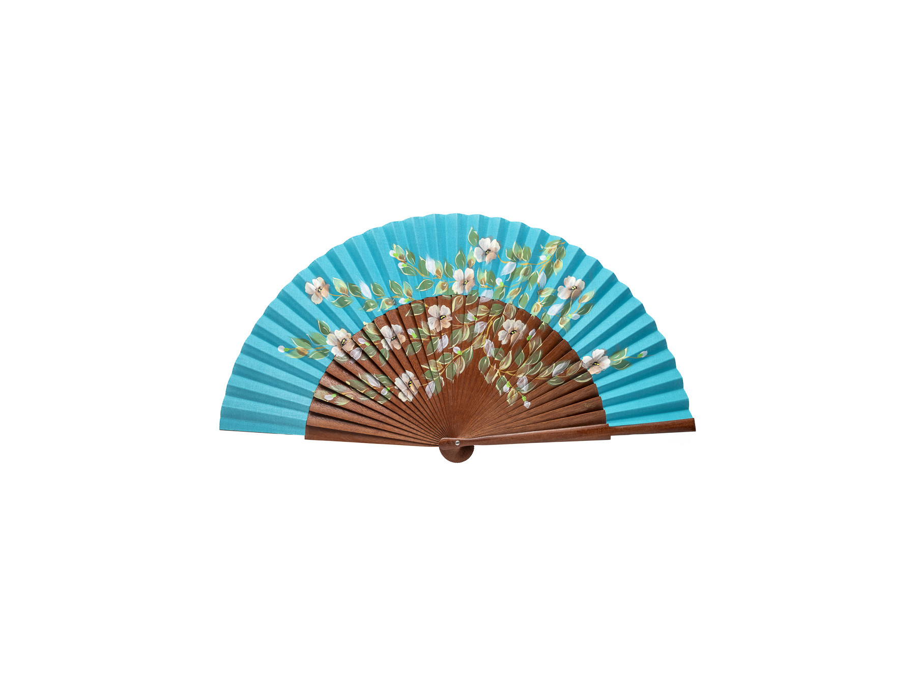 Elegante abanico pintado a mano. Madera de peral pulido por ambas caras.
