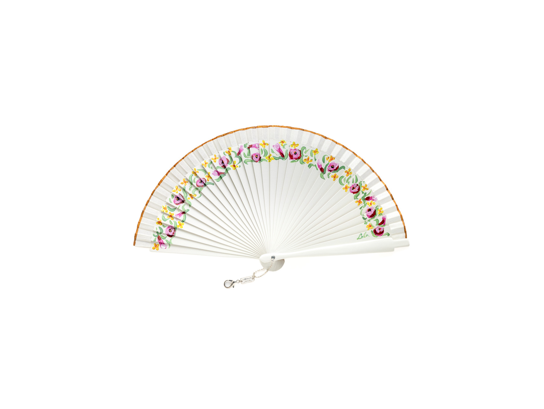 Precioso abanico pintado a mano en madera de abedul