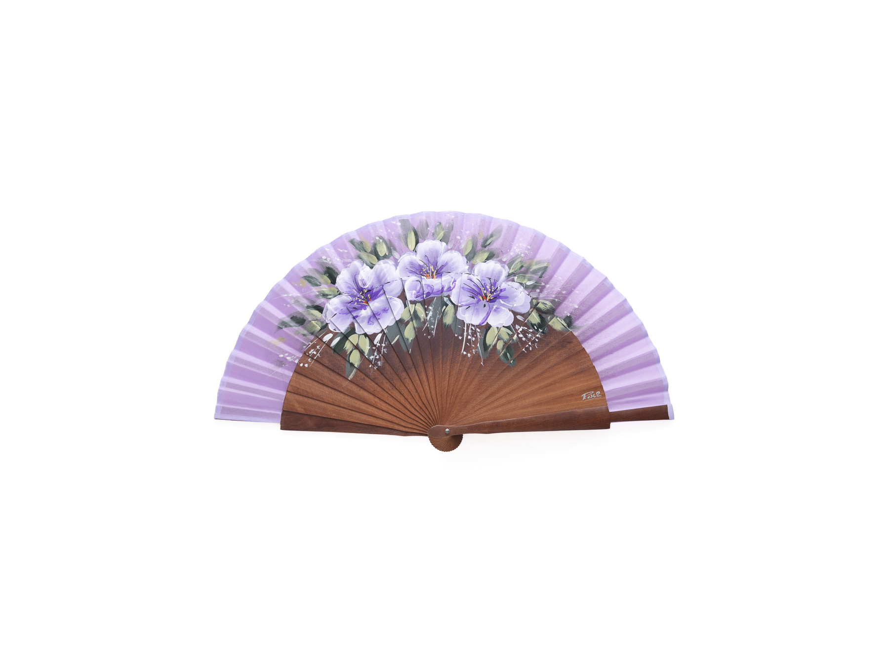 Abanico en madera de abedul pintado a mano con motivo floral